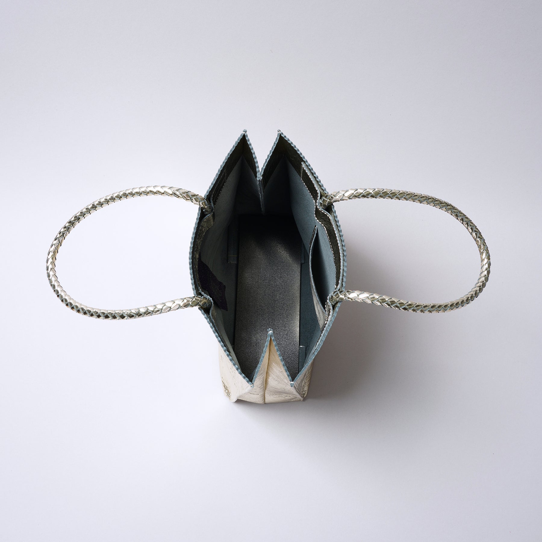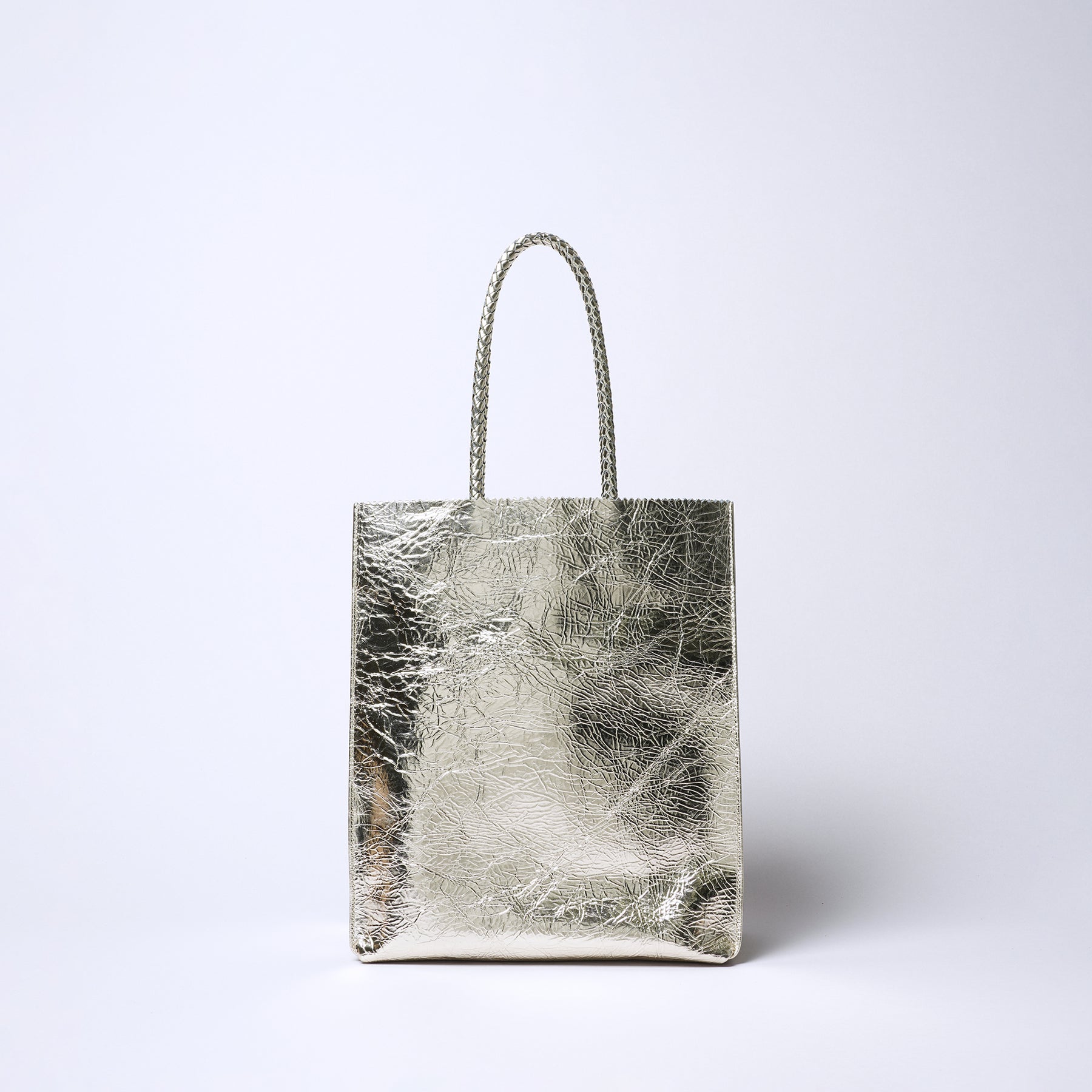 くしゃっとした箔加工がされたレザートート。