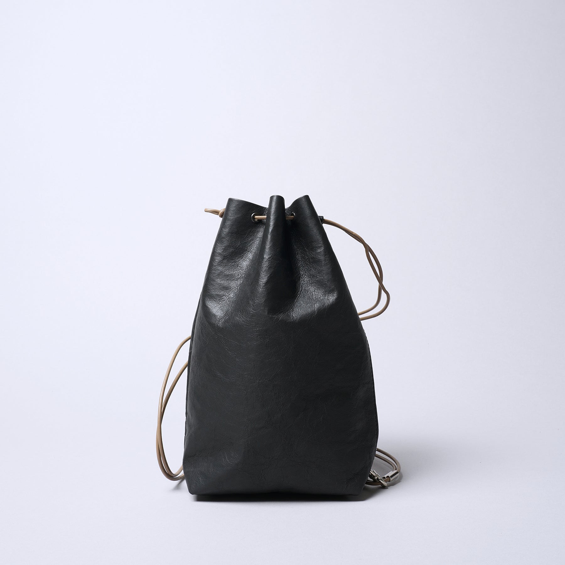 <センティ フラター ザ センシーズ>超軽量ダイニーマレザー巾着L/ブラック×キャメル