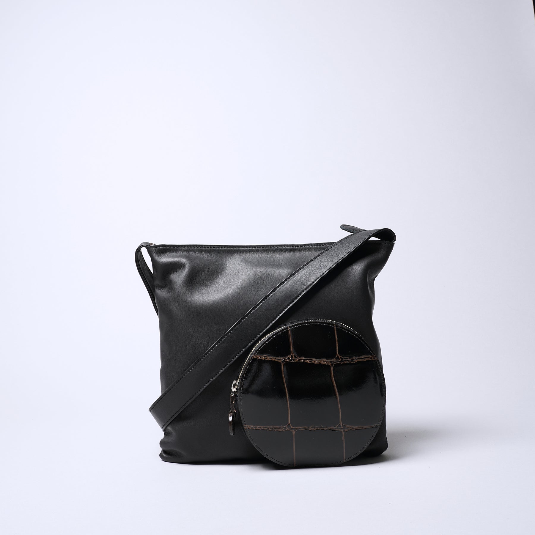 上質な素上げのオイルレザーとラージクロコのポケットのコンビネーションが特徴的なシリーズ。薄マチで体にぴったり沿うようにお使いになれる上に、しっかり入る収納サイズです。